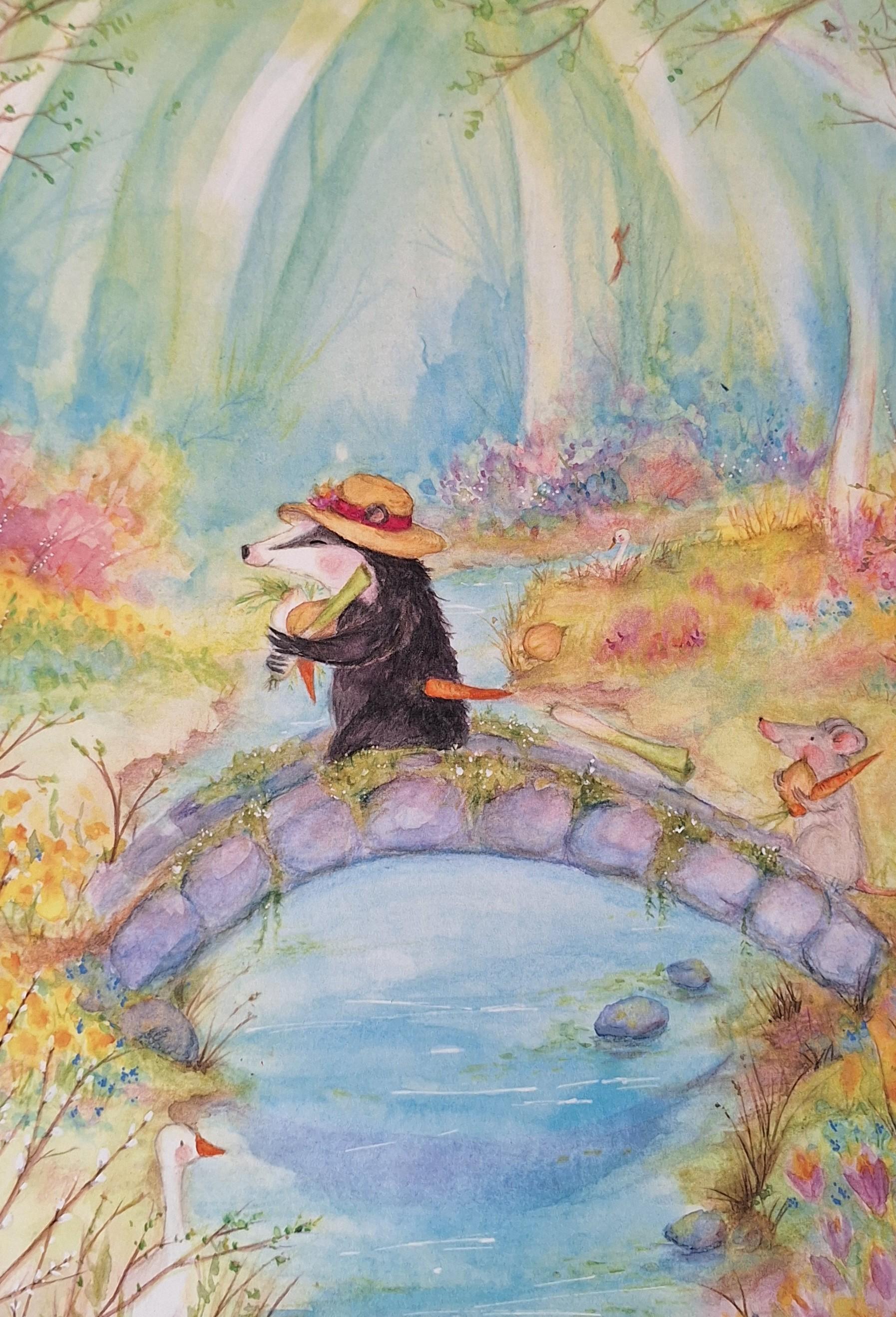 Op een vroege voorjaarsdag wordt Dunya Das wakker. Het zonnetje schijnt, de eerste bloemen bloeien. Blij loopt ze het bos in als ze voelt dat ze honger heeft. Wat zal ze eens gaan eten? Pannenkoeken? Taart? Nee, Dunya heeft zin in soep! Op een drafje snelt ze naar haar moestuin om te kijken of daar groentes gegroeid zijn die ze nu kan oogsten. Jahoor, er staat van alles! Maar onderweg naar huis verliest ze bijna heel de oogst. Gelukkig schiet iemand haar te hulp…