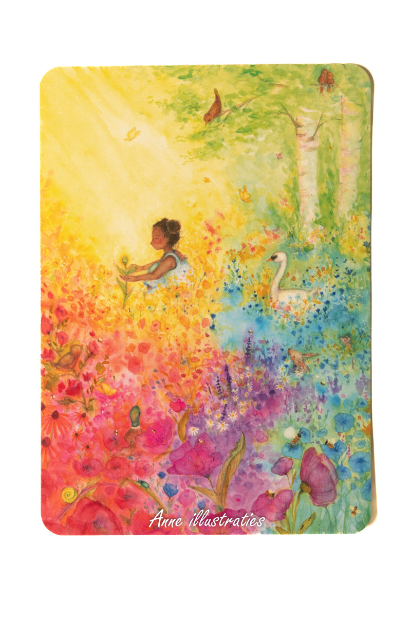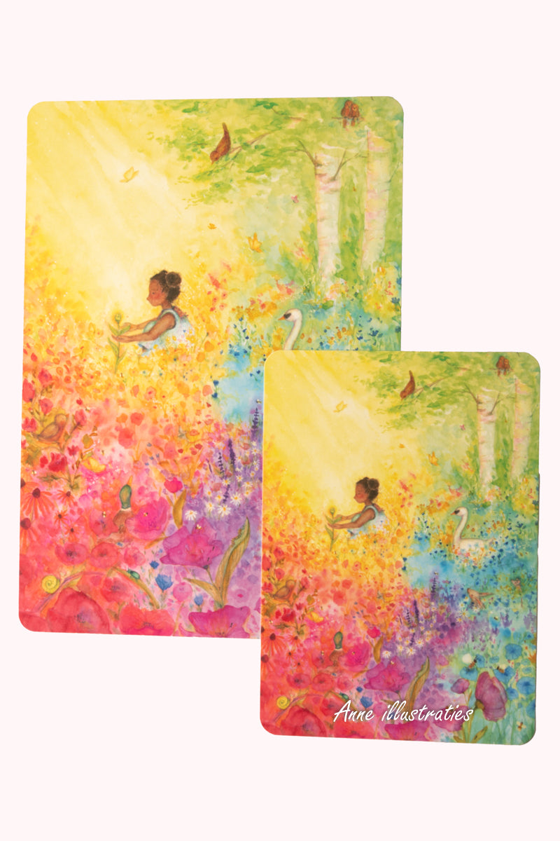 Wat is een vertelkaart? Het is eigenlijk een zoekplaat en een verhaal ineen. Aan de ene kant van de kaart staat een voorleesverhaal, aan de andere kant een bijbehorende illustratie. Terwijl je de kaart voorleest, mag jouw publiek wegdromen bij de prachtige plaat. Daar is van alles op te zien en te ontdekken…