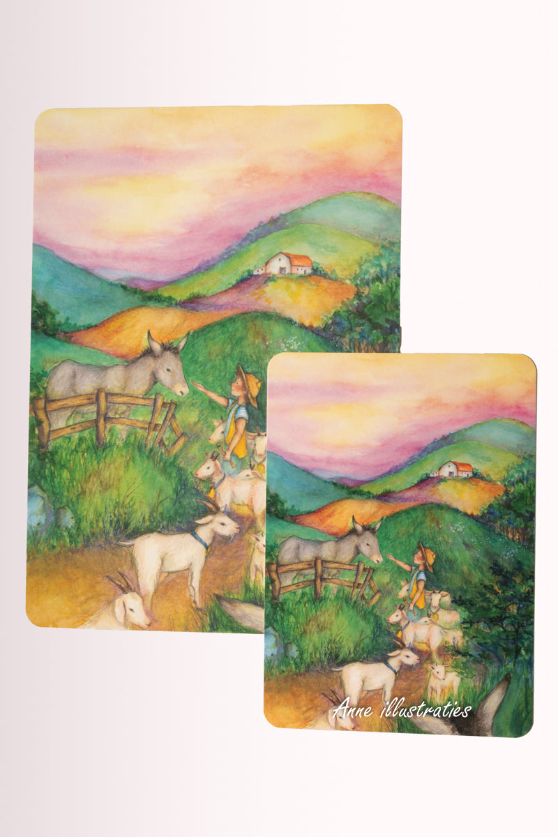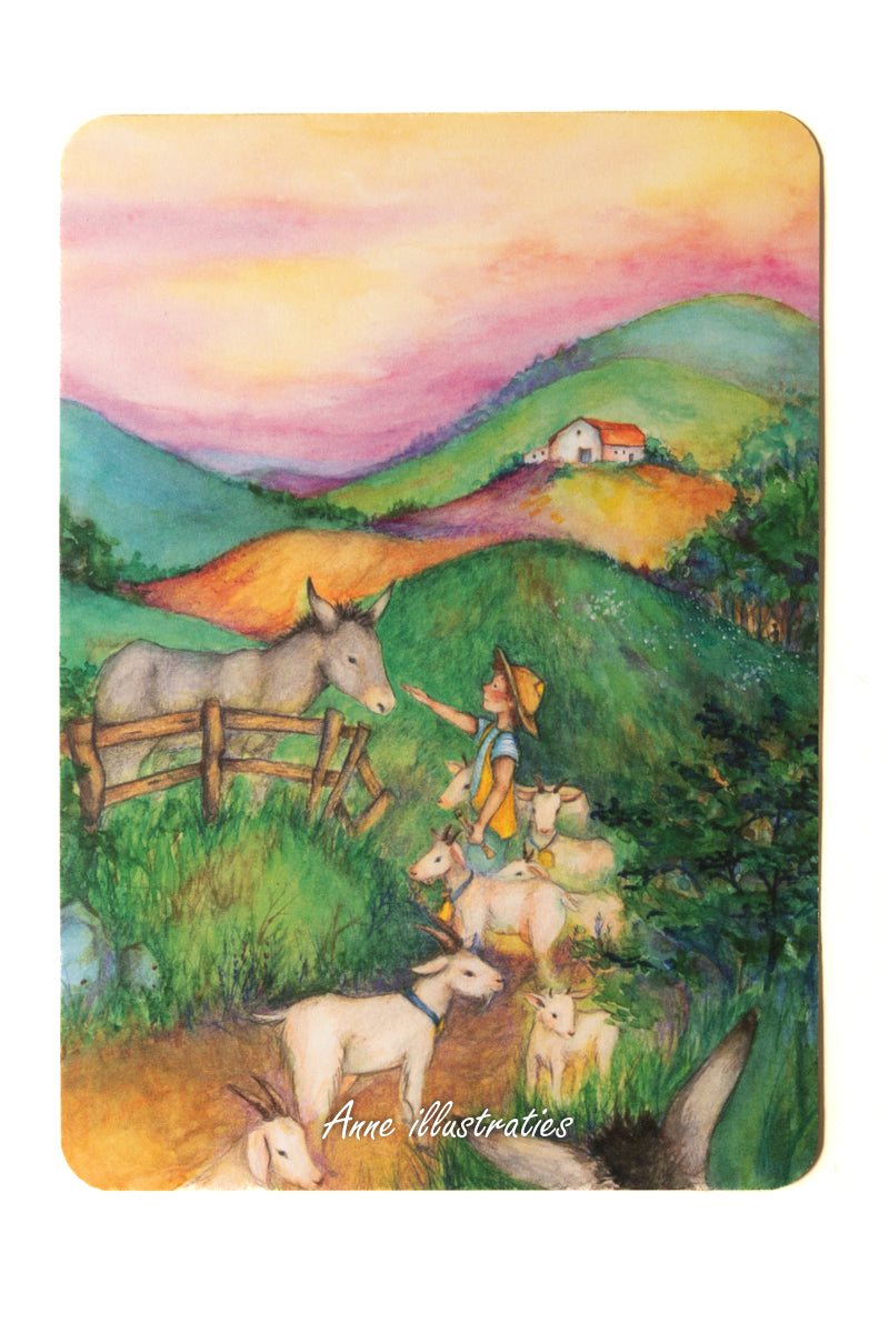 Een van de zomerkaarten gaat over een eenzame ezel die na een leven hard werken een eigen, malse weide heeft gekregen. Hij is de boer dankbaar, maar hij mist de andere dieren. Dan komt er op een dag een geitenhoeder langs die de ezel trakteert op een prachtig fluitconcert. En hij neemt nog iets fijns voor de ezel mee; een nieuwe vriend.